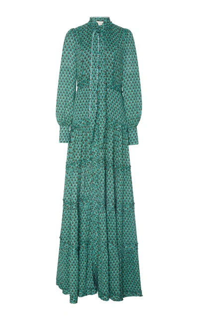 Mikael Aghal Gathered Metallic Floral print Jacquard Maxi Dress In Green ModeSens Very well made.