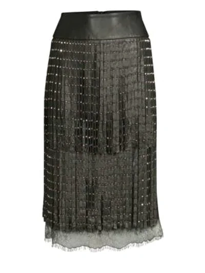 Alice And Olivia Senna Studded Leather Fringe Midi Skirt In Black Antique Silver ModeSens Very well made.
