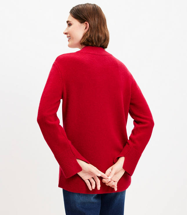 Slit Cuff Mock Neck Cashmere Tunic Sweater Very well made.
