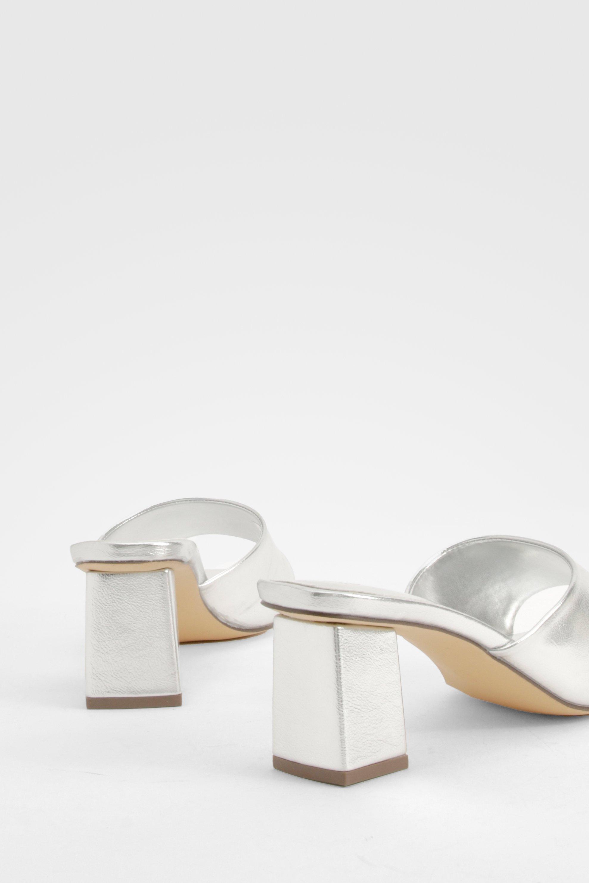 Boohoo Women s Wide Fit Metallic Low Block Heeled Mule Grey Very well made.