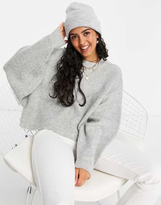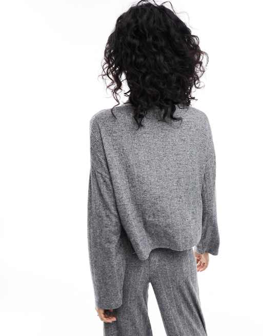 Miss Selfridge asymmetric off the shoulder slouchy cosy knit jumper in grey marl Very well made.