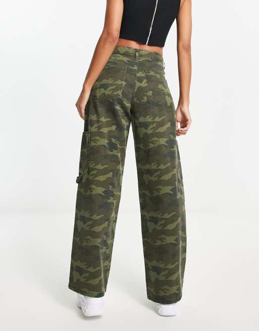 Miss Selfridge camo wide leg cargo pants in green Very well made.