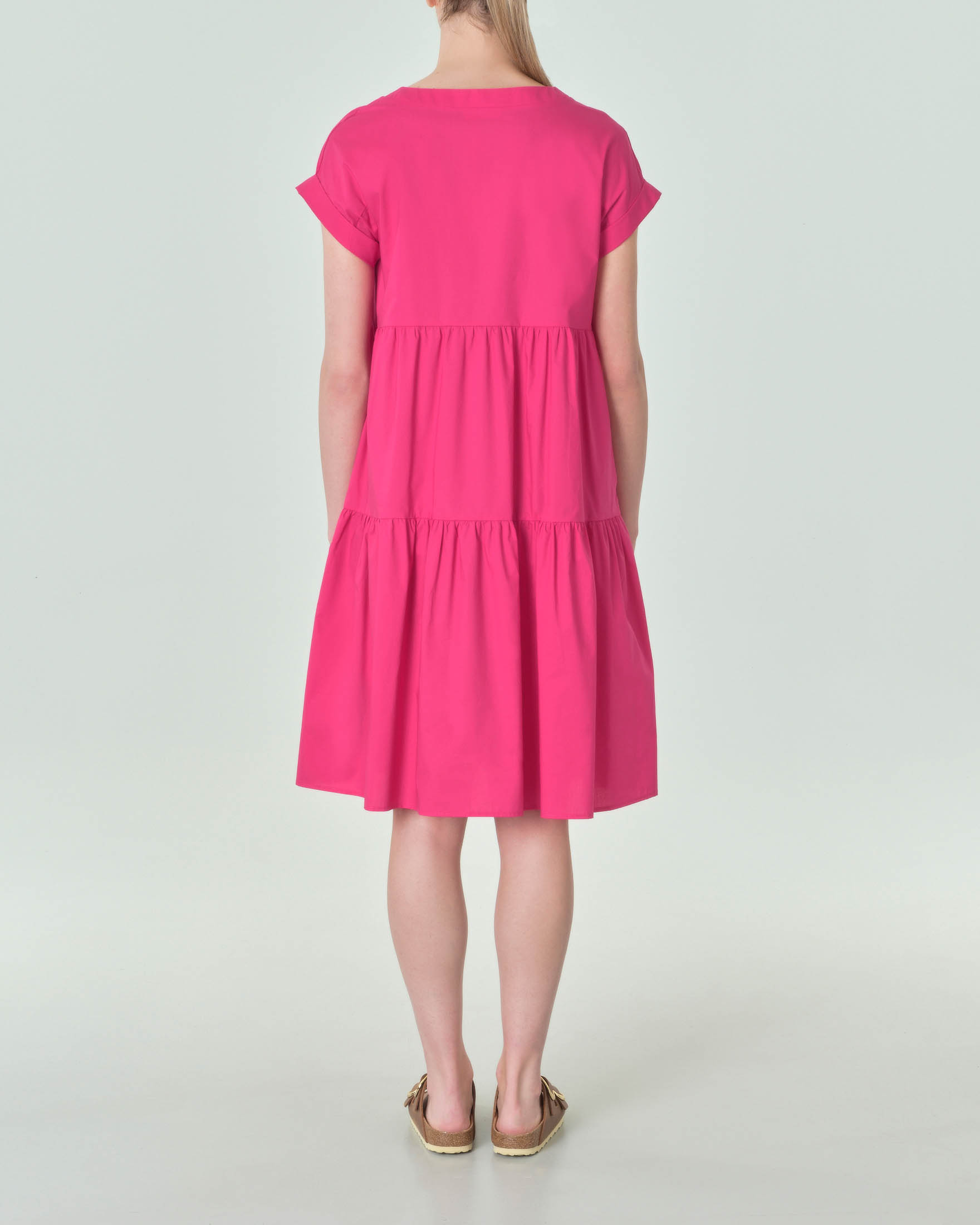 Abito midi fucsia a maniche corte in popeline di cotone con ampia gonna a balze Very well made.