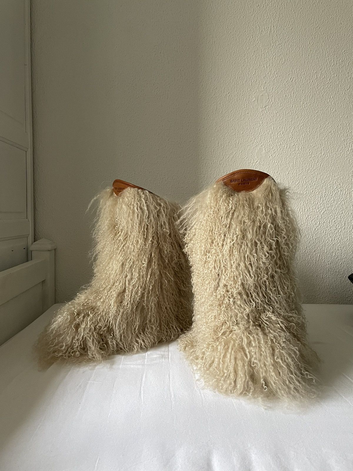 Saint Laurent Paris Yves Saint Laurent saint laurent moon boots from curly mongolian fur Grailed Very well made.