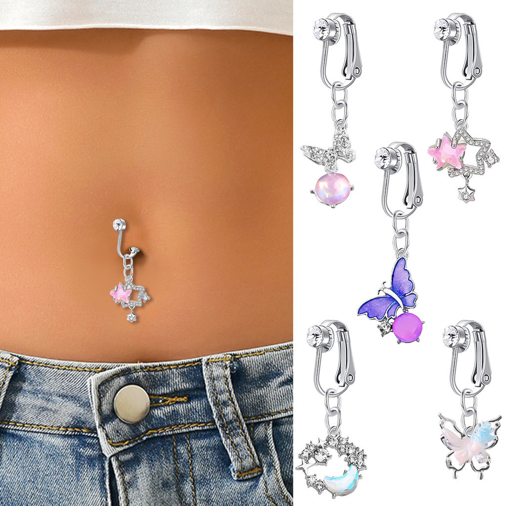 1 Pc Light Luxury High Sense New Color Butterfly Women Free Piercing Human Body Fake Belly Button Clip Very well made.