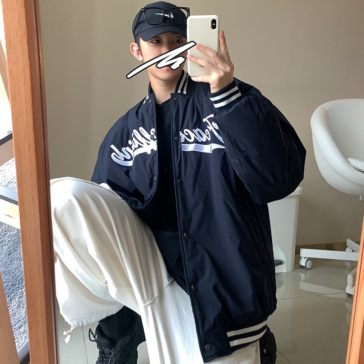 Ins Unisex Navy Blue Letter Print Baseball Jacket Men Oversized Varsity Jacket Baseball Versatile Streetwear Hip Hop Coat 2022 New Korean Couple Clothes Shopee Philippines Very well made.