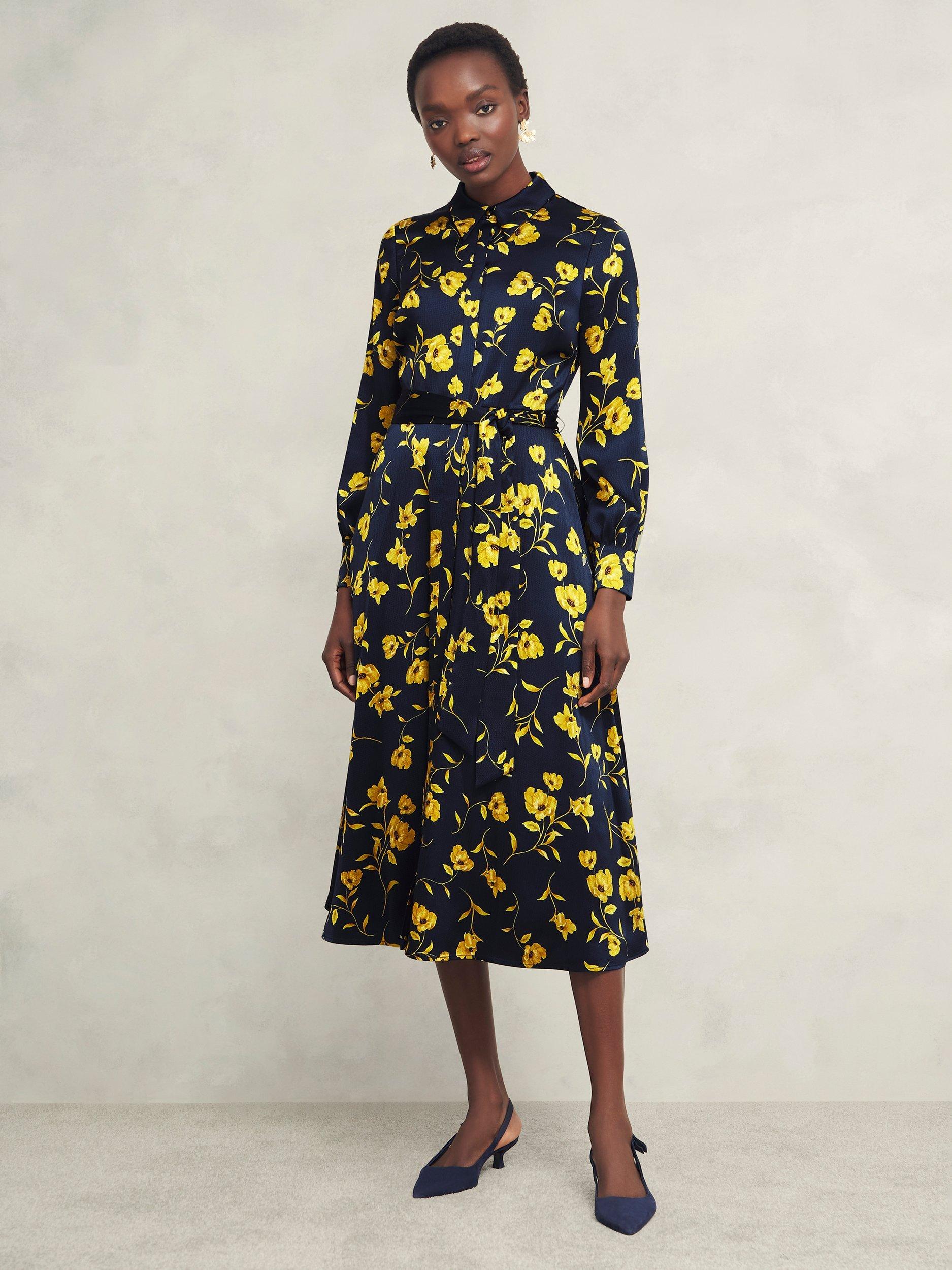 Hobbs Amelia Floral Shirt Dress Navy Yellow Very well made.