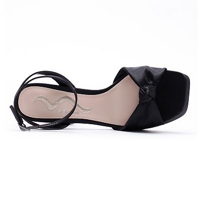 Womens Anna Black Satin Mid Heel Strappy Dress Sandal Nina Shoes Very well made.