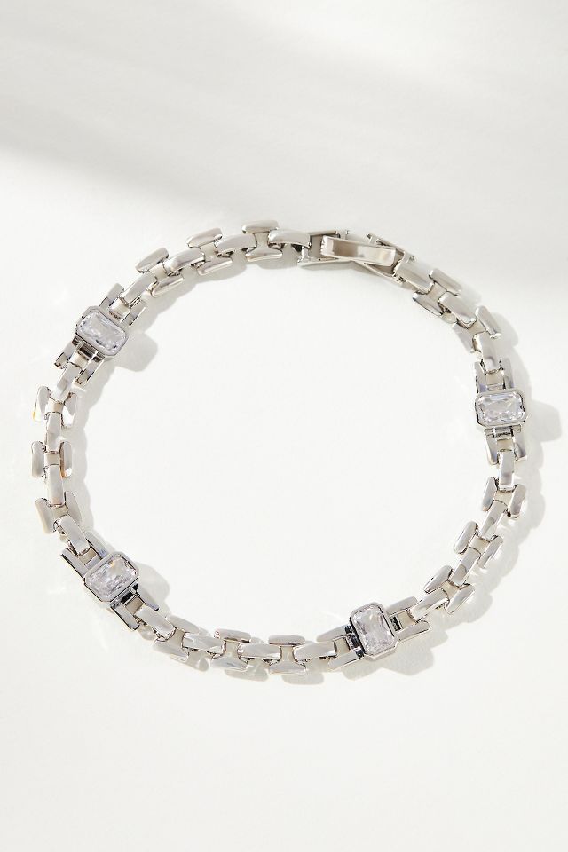 Spaced Crystal Bracelet by Anthropologie in Silver Size M L Very well made.