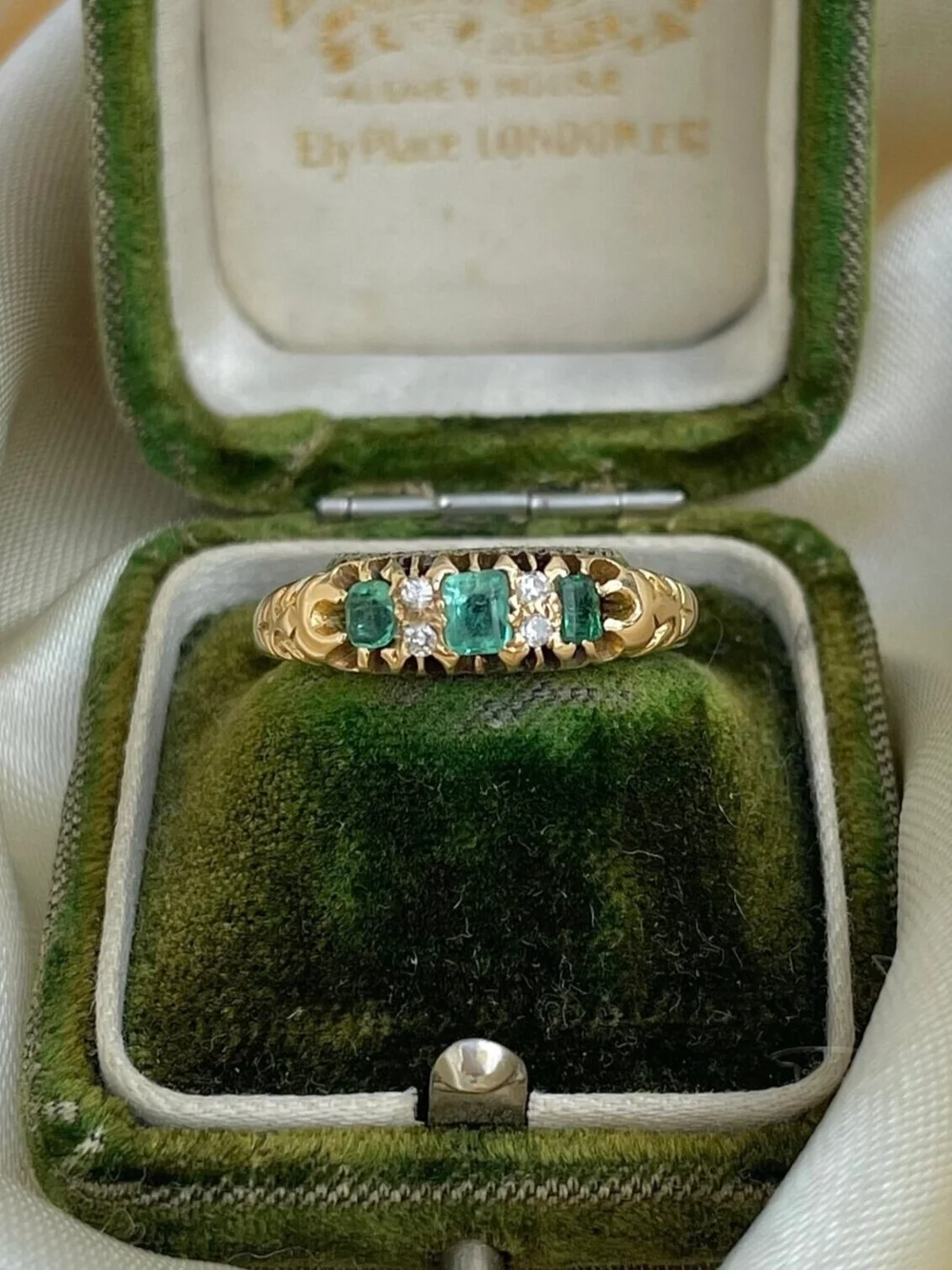 Antique 18ct Yellow Gold Emerald and Diamond Ring Gembank1973 Very well made.