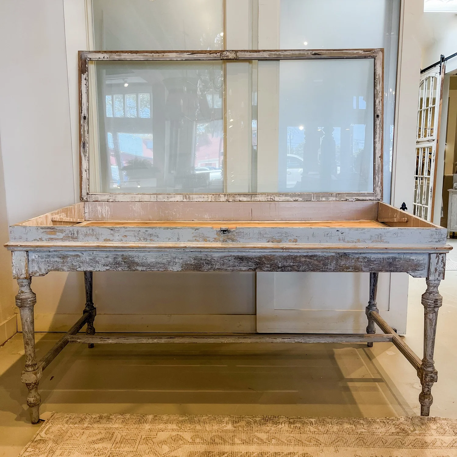 Oak Antique German Jewelry Display Showcase Kitchen Island Wine Table Very well made.