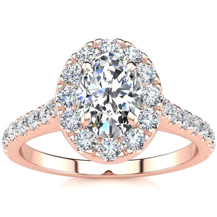1.5 Carat Oval Shape Halo Moissanite Engagement Ring in 14K Rose Gold 4.50 g Size 7.5 by SuperJeweler Very well made.