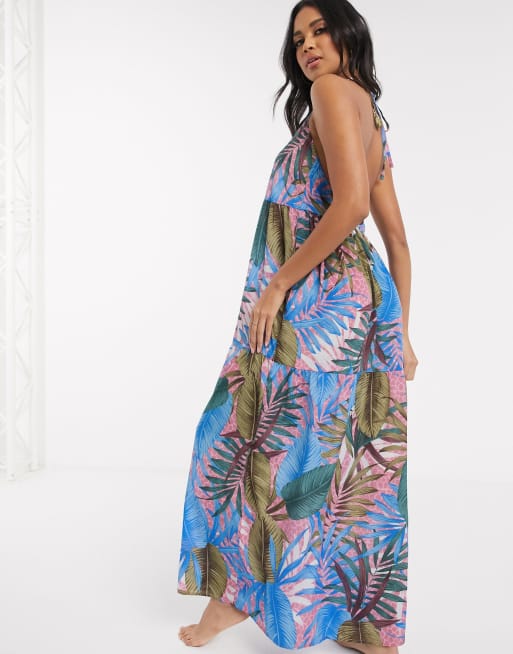 ASOS DESIGN tiered strappy maxi beach dress in tropical lilac palm print ASOS Very well made.