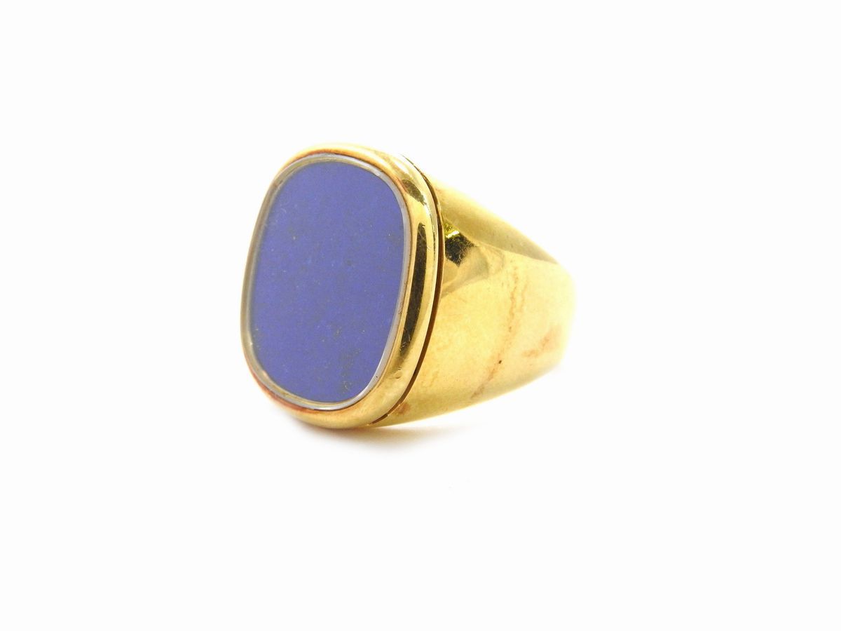 Yellow gold Patek Philippe Ellipse gentlemen ring with lapis lazuli Switzerland Eighties Auction Antique jewelry and watches Maison Bibelot Casa d Aste Firenze Milano Very well made.