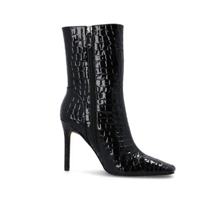 Black Patent croc embossed heeled Boots River Island Very well made.
