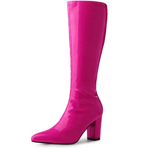 Perphy Women s Patent Leather Chunky Heels Knee High Boots Hot Pink 8 Target Very well made.