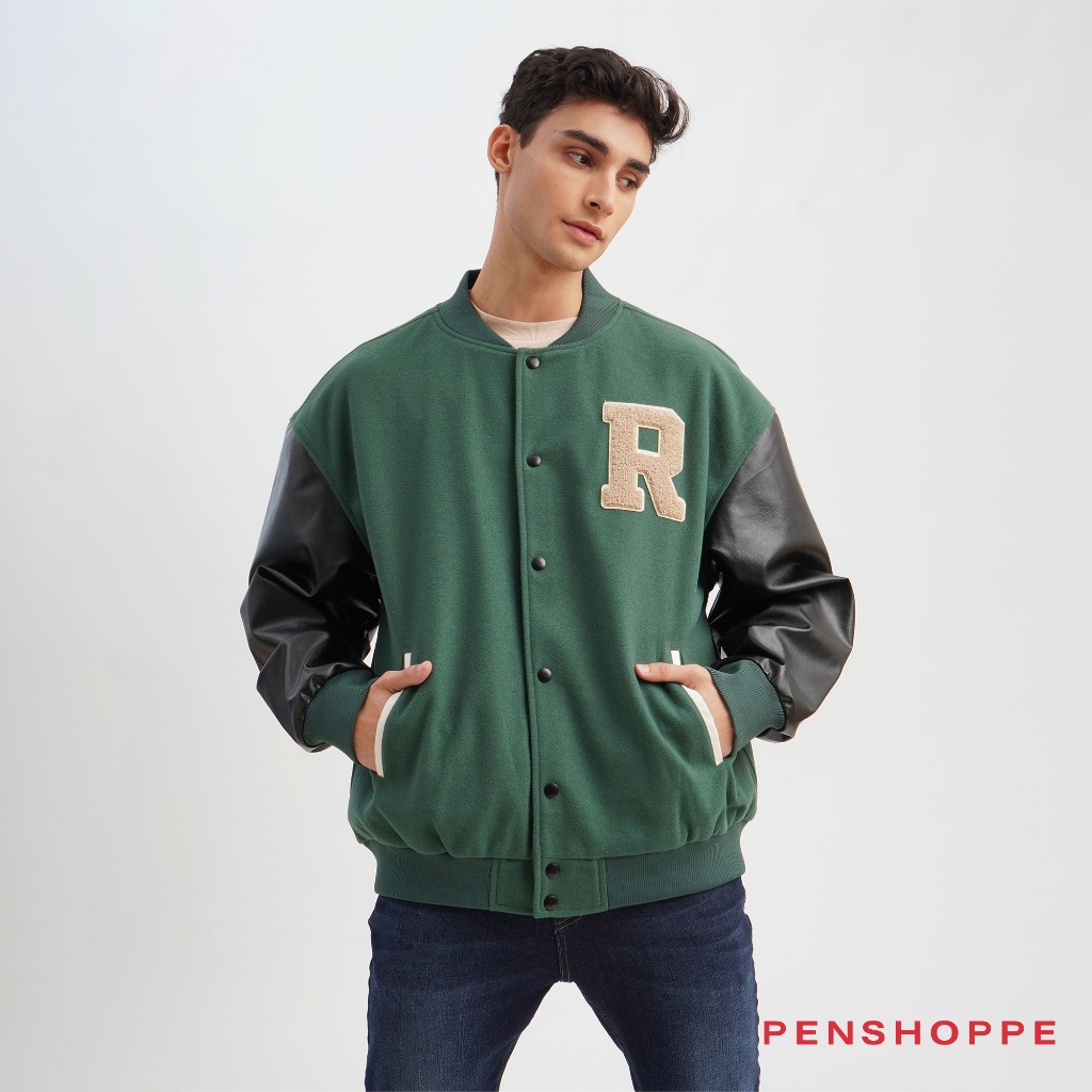 Penshoppe Unisex Varsity Jacket With R Patch Dark Green Shopee Philippines Very well made.