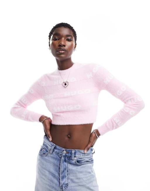 HUGO Slotelle cropped monogram jumper in pink ASOS Very well made.