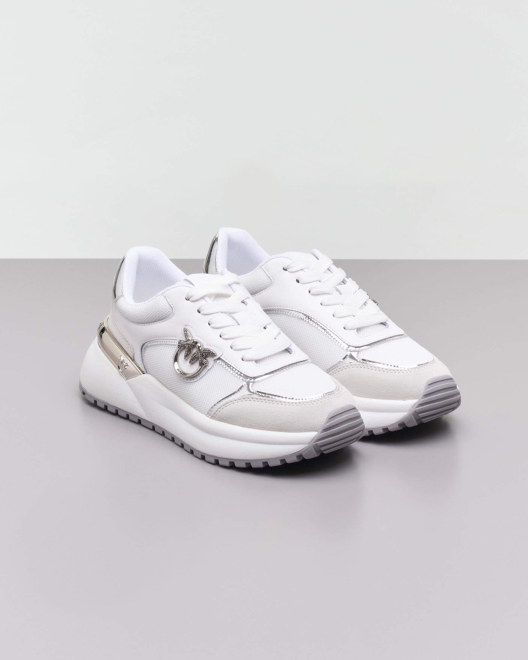 Sneakers bianche in mesh con punta in pelle scamosciata e fibbia Love Birds argento ai lati Very well made.