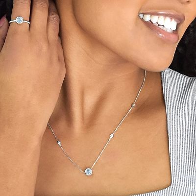 Gemminded Sterling Silver Lab Created Aquamarine and Diamond Accent Oval Pendant Very well made.