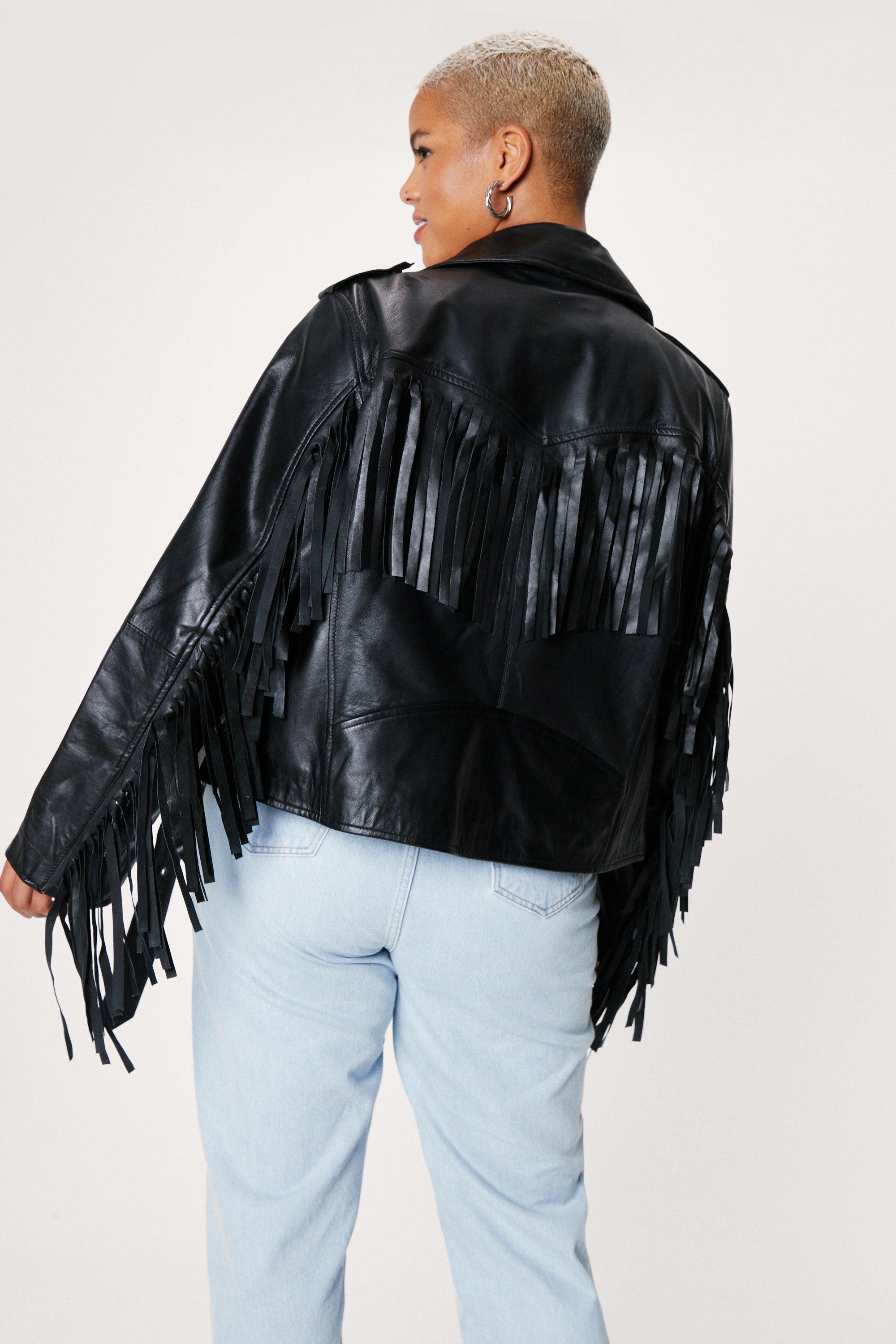 Plus Size Fringe Real Leather Biker Jacket Very well made.