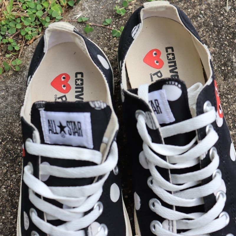 27cm Unisex COMME des GARCONS PLAY Converse Polka Dot Low Top Sneakers Black Pre owned Authentic Shopee Thailand Very well made.