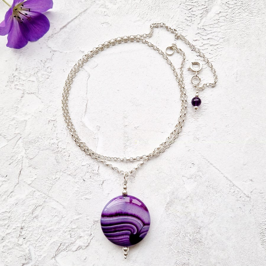 PURPLE AGATE donut pendant Very well made.