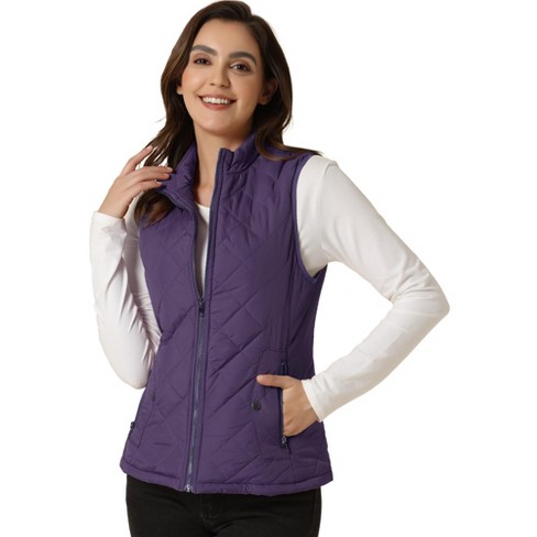 Allegra K Women s Stand Collar Lightweight Gilet Quilted Zip Vest Purple Small Target Very well made.