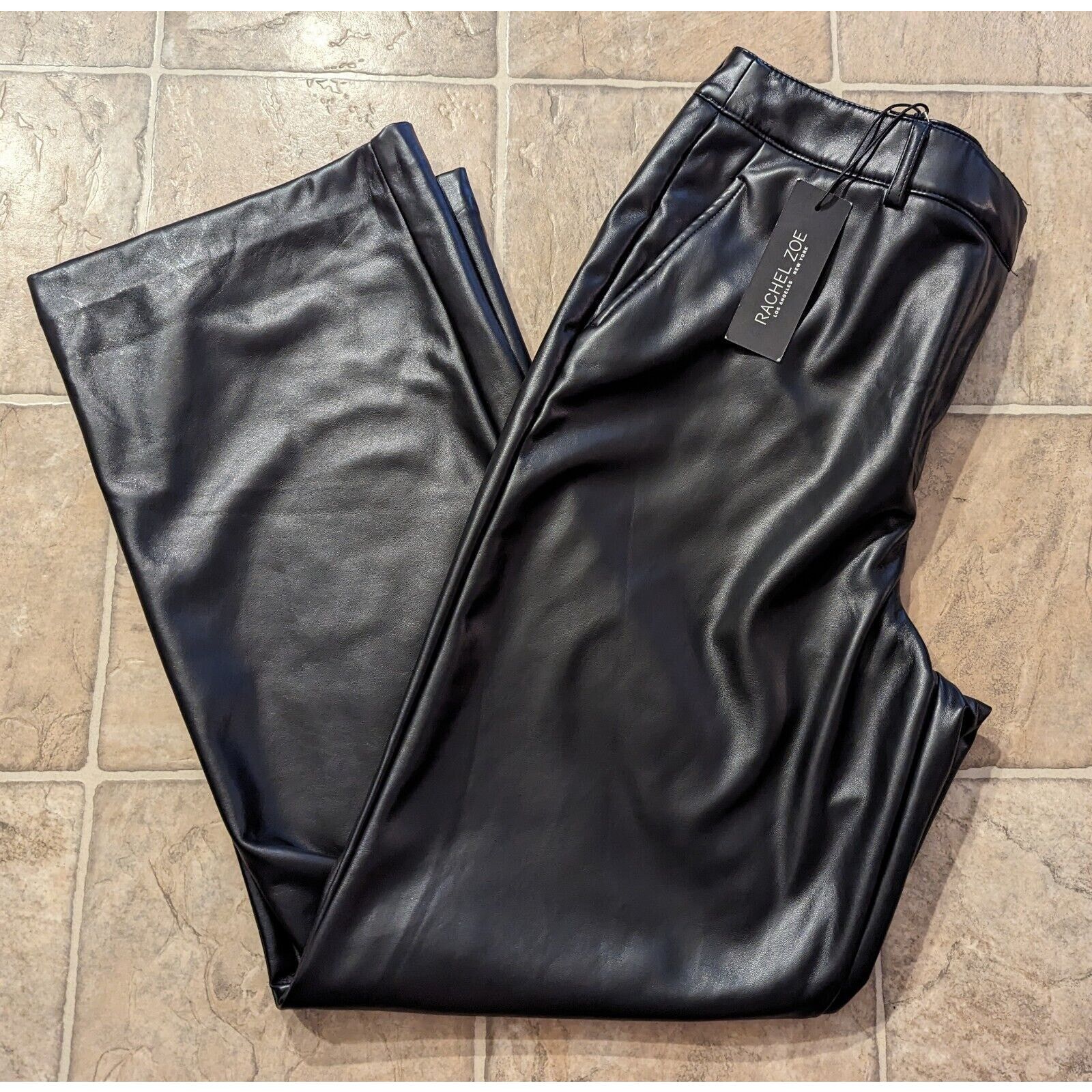Rachel Zoe Black Faux Leather Leggings Tummy Control Size L Very well made.