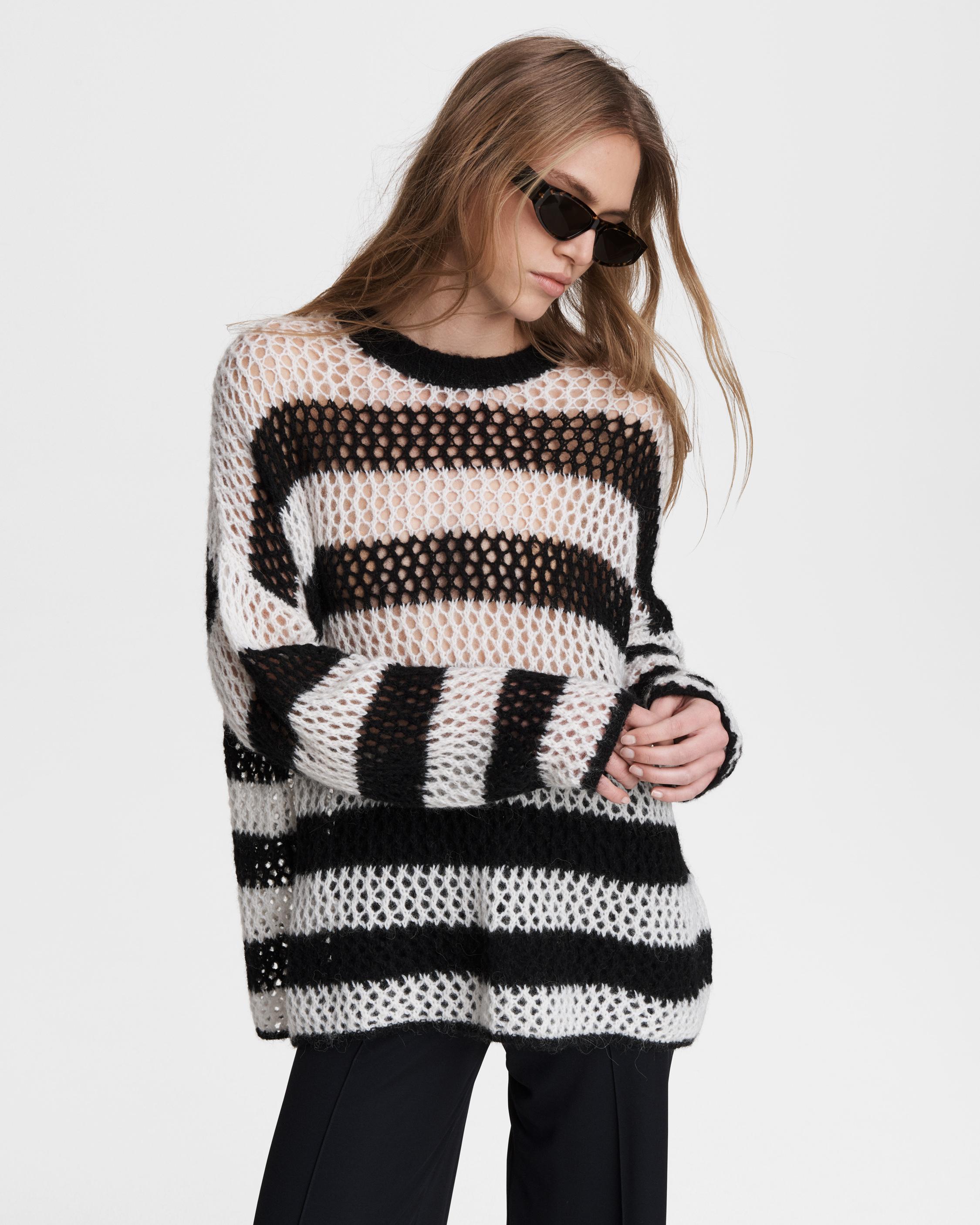 rag bone HIGH CONTRAST. Ultra fine merino wool meets metal grommets for a fresh take on the classic cable knit sweater. Instagram Very well made.