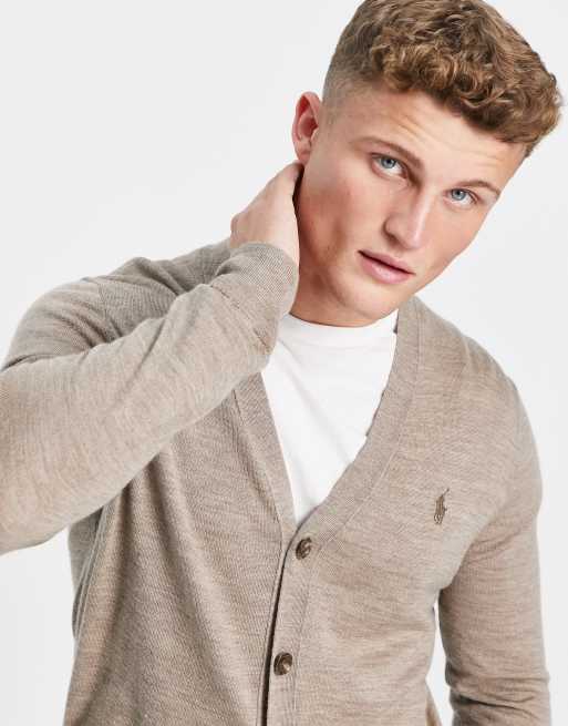 Polo Ralph Lauren icon logo merino wool cable knit cardigan in beige marl Very well made.