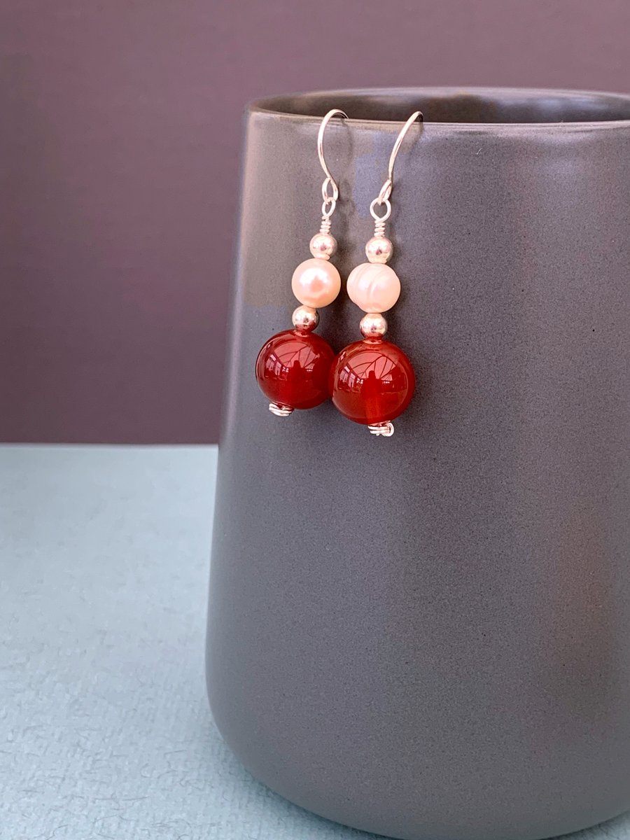 Red agate pearl earrings solid sterling silver Folksy Very well made.