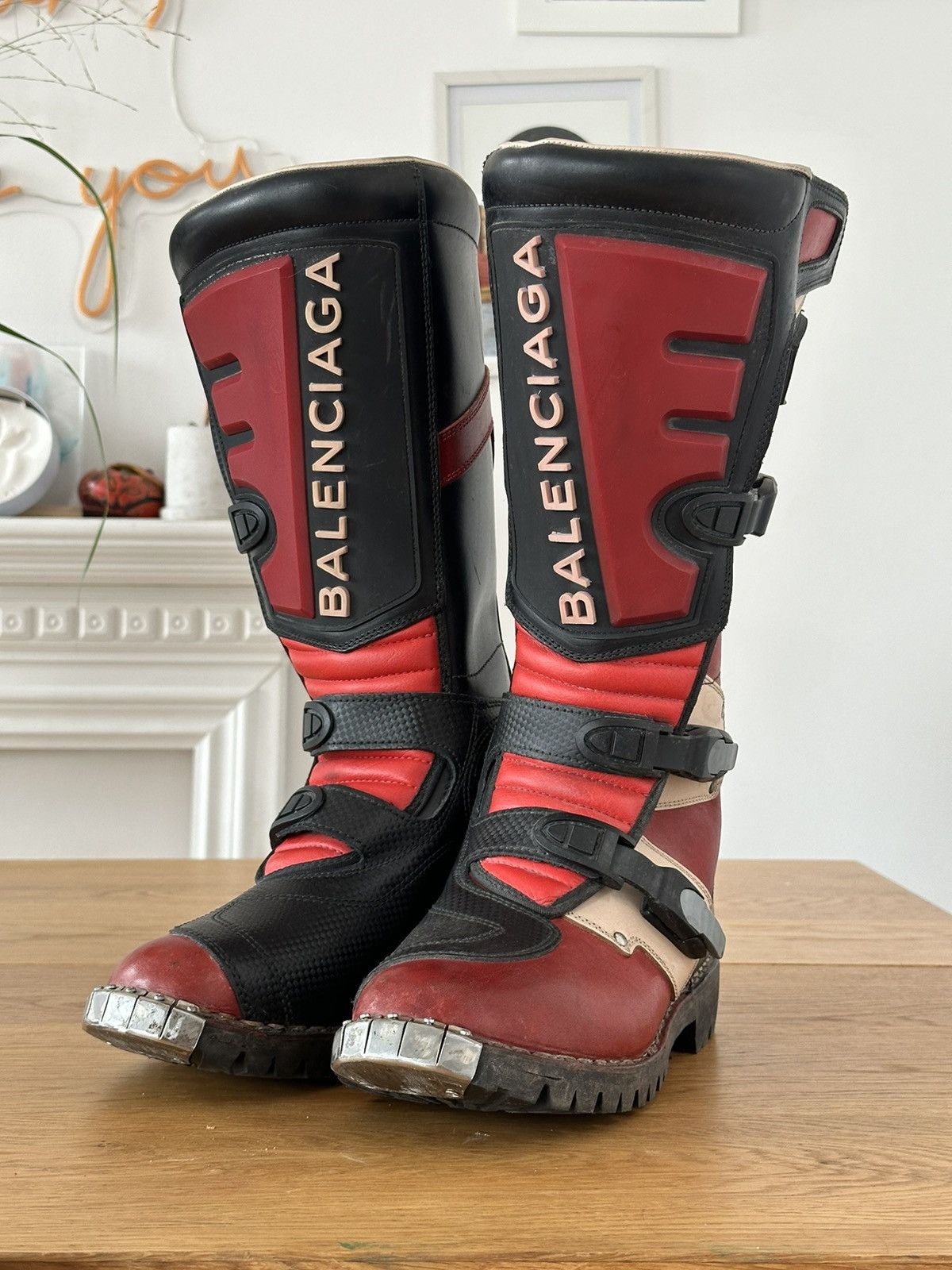 Balenciaga AW17 Moto Biker Red Black Boots Grailed Very well made.