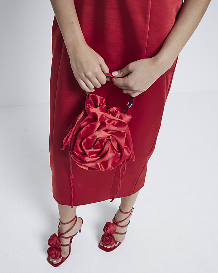 Red Satin Flower Corsage Clutch Bag River Island Very well made.