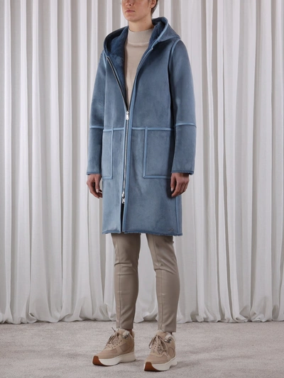 Shop Rino And Pelle Rino Pelle Ova Hooded Reversible Faux Suede Coat Mirage Blue Very well made.