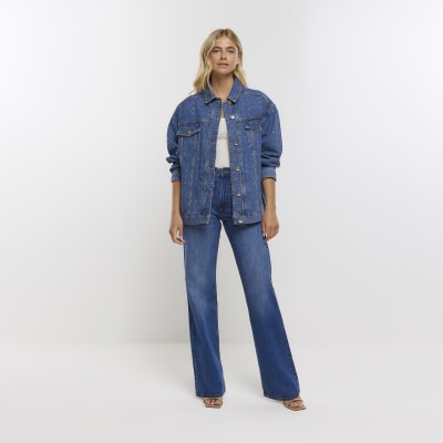 Blue oversized embellished denim jacket River Island Very well made.