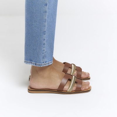 Brown leather flat sandals River Island Very well made.