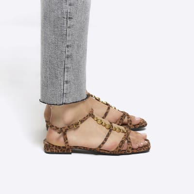 River Island Leopard Print Strappy Gladiator Sandals in Metallic Lyst UK Very well made.