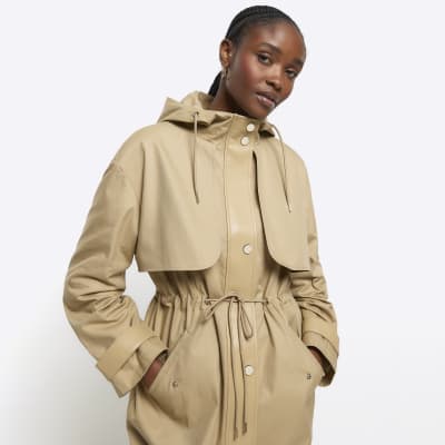 Khaki hooded longline parka coat River Island Very well made.