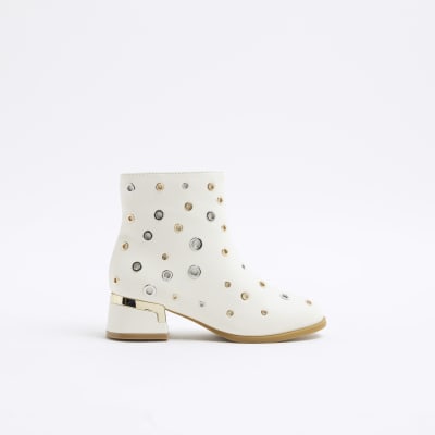Girls Cream Studded Heeled Boots River Island Very well made.