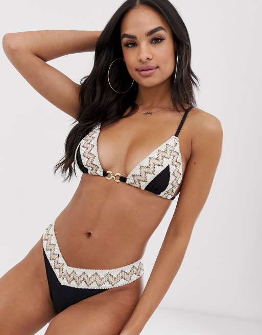 River Island soft triangle bikini set with zig zag in black ASOS Very well made.