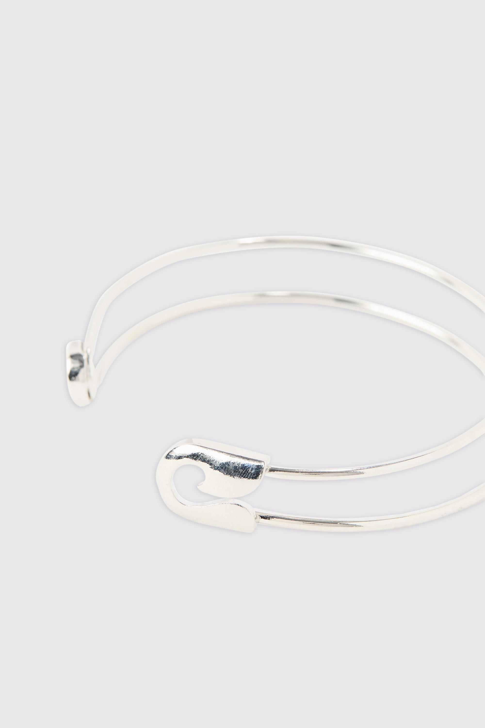 Safety Pin Detail Cuff In Silver Very well made.