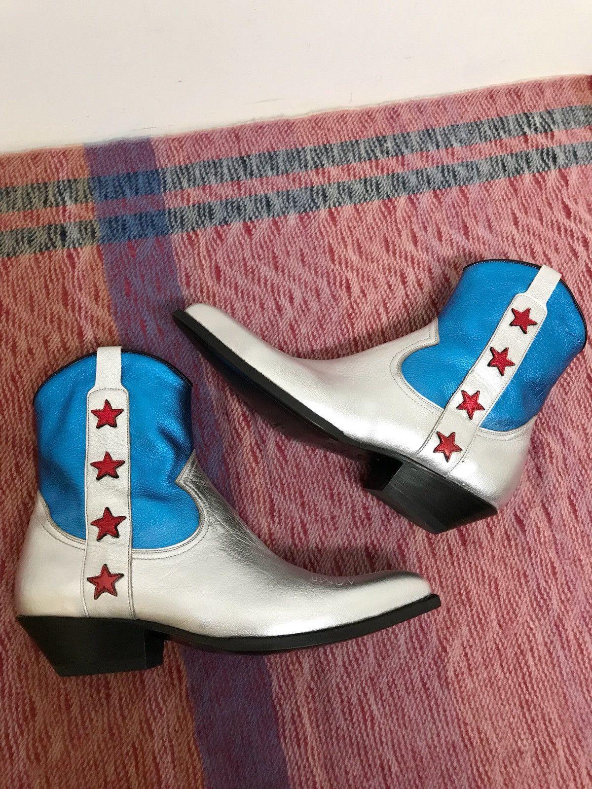 Saint Laurent Paris RARE SS15 Santiag 40 Metallic Silver Star Boots Grailed Very well made.