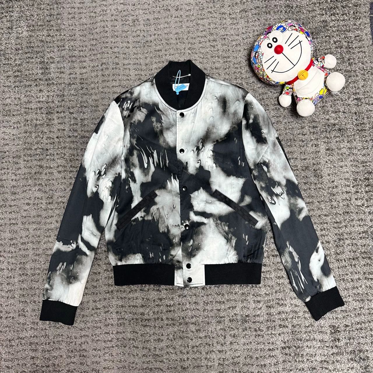 Saint Laurent Tie dye Varsity Jacket In Flowing Black And Gray Satin In Black Grey ModeSens Very well made.