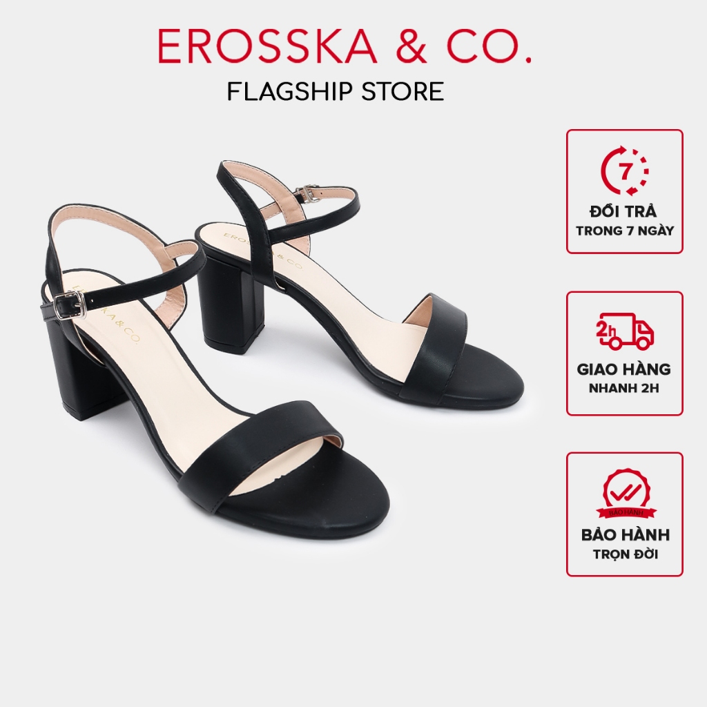 Erosska Women s fashion sandals with square heel simple style black 7cm high EB066 Shopee Singapore Very well made.