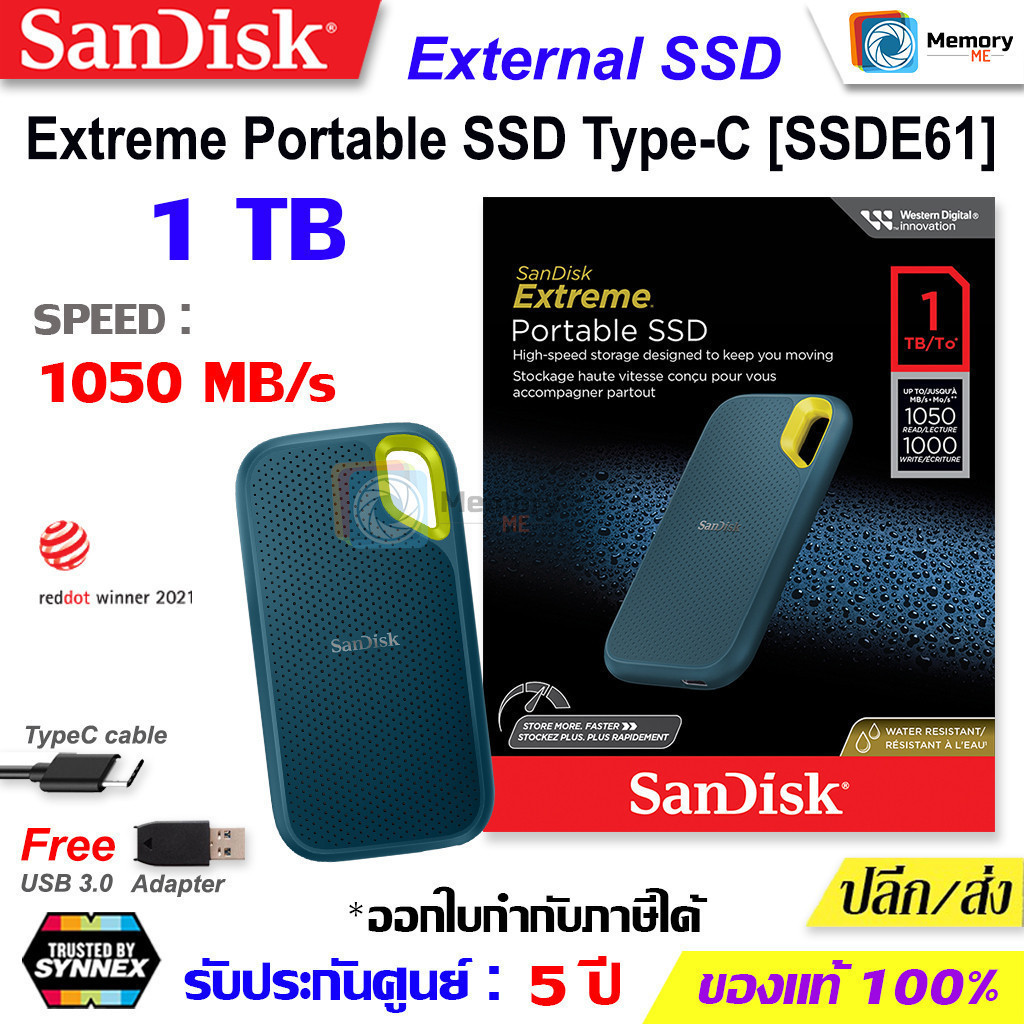 SanDisk Extreme Portable SSD 1TB SDSSDE61 1T00 G25 Read 1050mb s 5 Synnex Lazada .th Very well made.