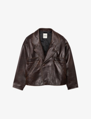 SANDRO Oversized collar relaxed fit leather jacket Selfridges Very well made.