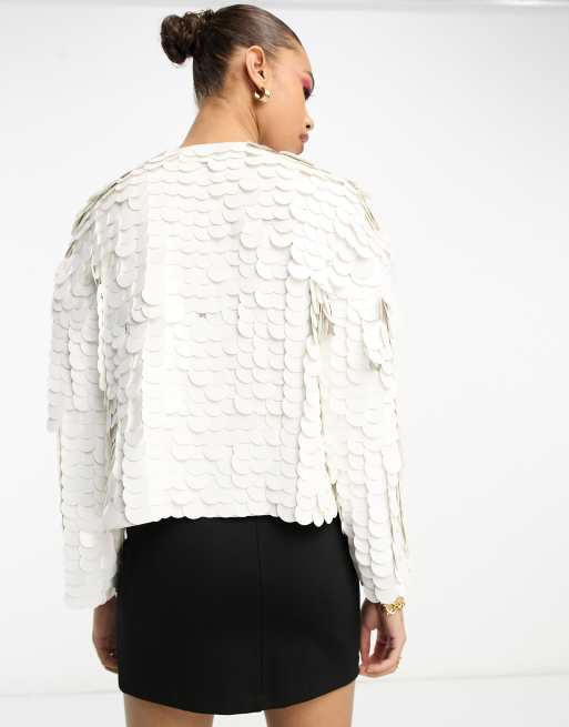 ASOS DESIGN disc sequin festival jacket in white Very well made.