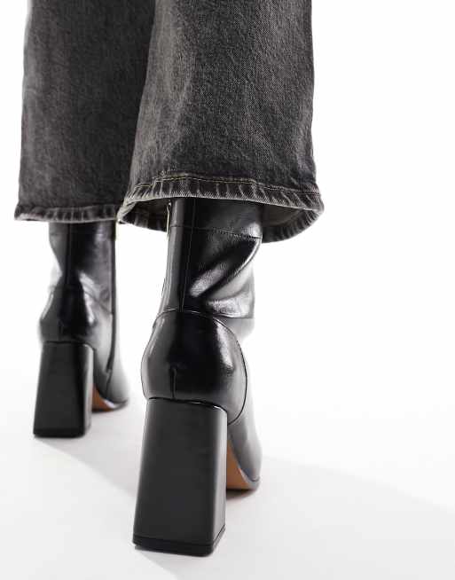 ASOS DESIGN Wide Fit Everest flared heel boots in black Very well made.