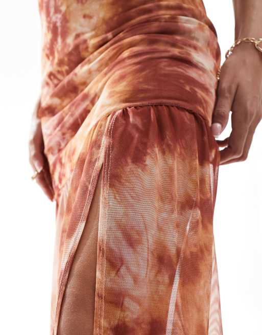 ASOS DESIGN strappy mesh boho maxi dress with gathered hem and side slit in marble print Very well made.